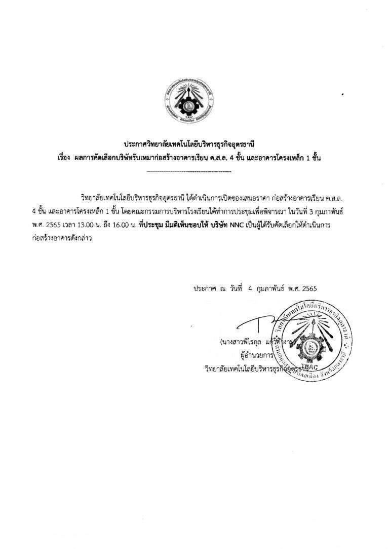 ผลการคัดเลือกบริษัทรับเหมาก่อสร้าง อาคารเรียน ค.ส.ล. 4 ชั้น และอาคารโครงเหล็ก 1 ชั้น