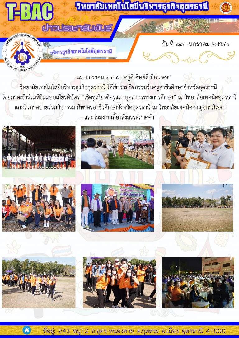 วันครูประจำปี 2566 จัดขึ้นภายใต้แนวคิด “พลังครู คือ หัวใจของการพลิกโฉมคุณภาพการศึกษา” Teacher’s Power is the Heart of Transforming the Educational Quality มีวัตถุประสงค์เพื่อประกอบพิธีระลึกถึงพระคุณบูรพาจารย์ ส่งเสริมสามัคคีธรรมระหว่างครู และความเข้าใจอันดีระหว่างครูกับประชาชน และส่งเสริมยกย่องเชิดชูเกียรติผู้ประกอบวิชาชีพทางการศึกษาที่ประกอบคุณงามความดี หรือทำคุณประโยชน์ต่อวงการศึกษาให้เป็นที่ประจักษ์แก่สาธารณชน และเป็นแบบอย่างให้เยาวชนรุ่นหลังได้ยึดถือปฏิบัติตาม