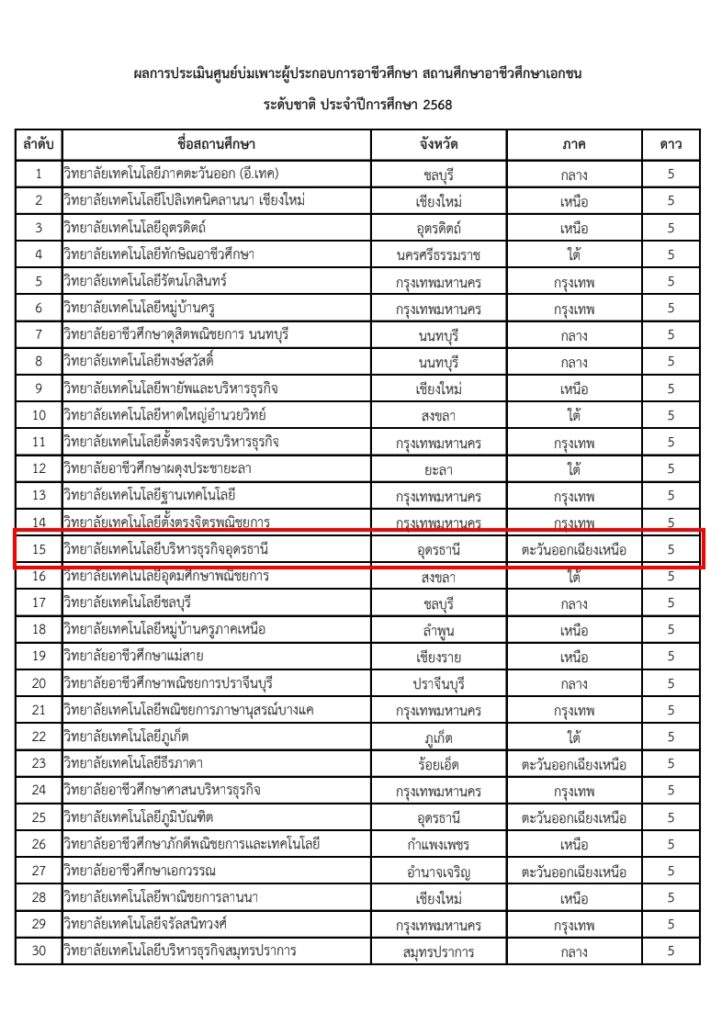 ผลการประเมินศูนย์บ่มเพาะผู้ประกอบการอาชีวศึกษา สถานศึกษาอาชีวศึกษาเอกชน ระดับชาติ ประจำปีการศึกษา 2568